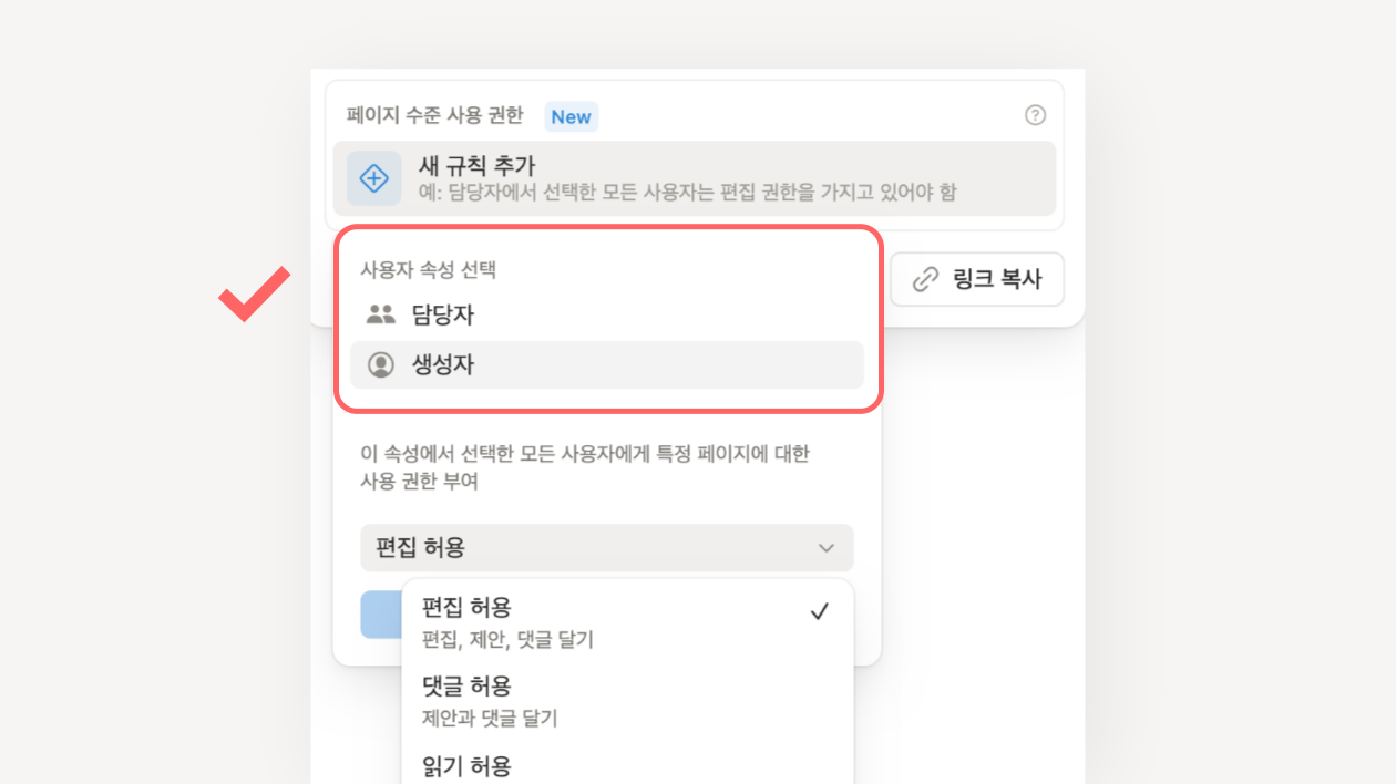 ๊ฐ ํ์ ๋ด๋นํ๋ ์ฌ๋์๊ฒ๋ง โ๋ณด๊ธฐ / ๋๊ธ / ํธ์งโ ๊ฐ์ ๊ถํ์ ๊ฐ๋ณ๋ก ์ง์ ํ ์ ์์ต๋๋ค. ํ์ด์ง๋ฅผ ๋ง๋ '์์ฑ์' ์ด๊ฑฐ๋, ํ์ด์ง๋ฅผ ํ ๋น๋ฐ์ '๋ด๋น์' ๋ฑ์ด ์๊ฒ ์ฃ ๐๐ป